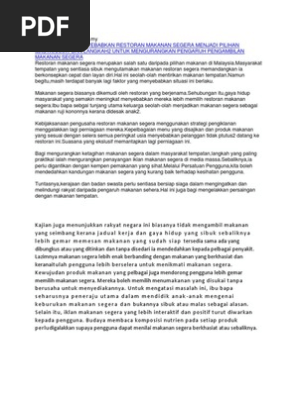 Minda Pembaca Kesan Pengambilan Makanan Segera